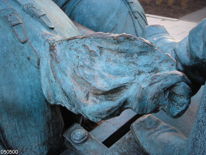 | Knotted tail of the left-rear horse drawing the caisson in the artillery group. |