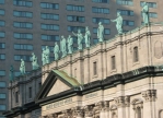 Bibliotheque et Archives nationales facade sculptures in Montreal, Quebec, Canada (dcMem# 8332)